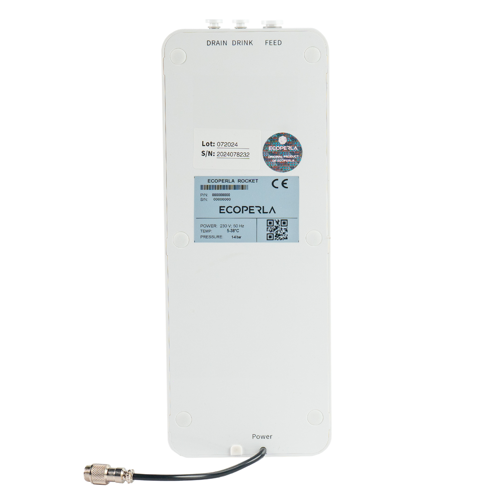 Wymiana wkładów zajmuje tylko 30 sekund, a o konieczności serwisu informują dedykowane wskaźniki na frontowym panelu obudowy i alarm dźwiękowy. Zintegrowany system antyzalaniowy zwiększa bezpieczeństwo użytkowania Ecoperla Rocket Plus eliminując ryzyko niekontrolowanego wycieku wody. Automatyczna blokada zatrzymuje pracę urządzenia po 30 minutach nieprzerwanej filtracji. System Ecoperla Rocket Plus został również wyposażony w funkcję automatycznego płukania membrany osmotycznej przefiltrowaną wodą, co gwarantuje jej maksymalną świeżość przez cały okres eksploatacji. W zależności od potrzeb proces płukania można również wywołać manualnie.
