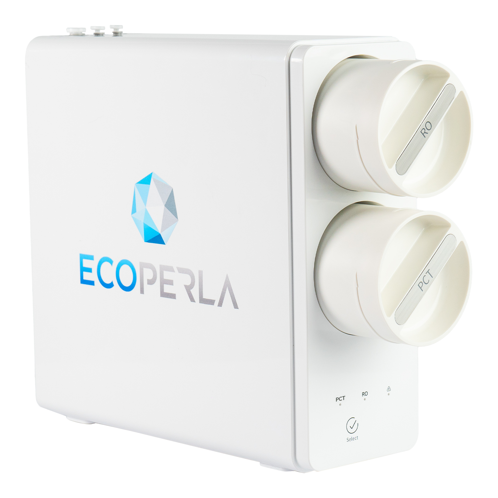 Odwrócona osmoza Ecoperla Rocket Plus to minimalistyczny filtr przepływowy napędzany pompą ciśnieniową. Woda zostaje wstępnie oczyszczona na wkładzie PCT+pH, a następnie trafia na membranę osmotyczną RO, która eliminuje pozostałe zanieczyszczenia z dokładnością do pojedynczych jonów. Po membranie osmotycznej woda trafia ponownie do wkładu PCT+pH, gdzie następuje optymalizacja jej parametrów organoleptycznych (warstwa węgla aktywnego) oraz korekta pH (złoże mineralizujące). Filtracja Ecoperla Rocket Plus gwarantuje bardzo niski odrzut wody – tylko 1 litr koncentratu kierowanego do kanalizacji na 2 litry oczyszczonej kranówki.