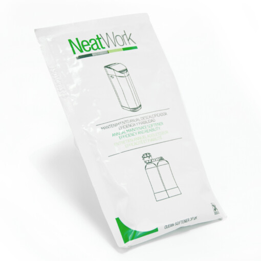 Serwis roczny zmiękczacza wody nigdy nie był taki prosty. Raz w roku wystarczy wsypać proszek NeatWork Clean Softener do studni w zbiorniku z solą. Zawartość saszetki rozpuści się w roztworze solanki. W trakcie regeneracji granulat usunie z żywicy jonowymiennej wytrącone osady.